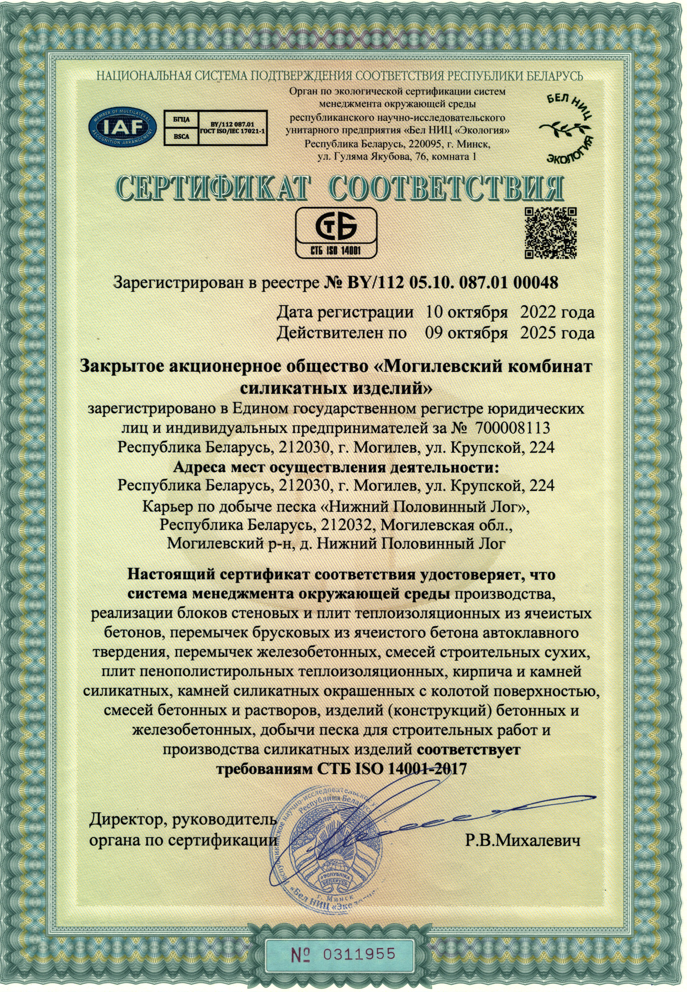 Газобетон Могилевский КСИ D500 300x250x625 мм